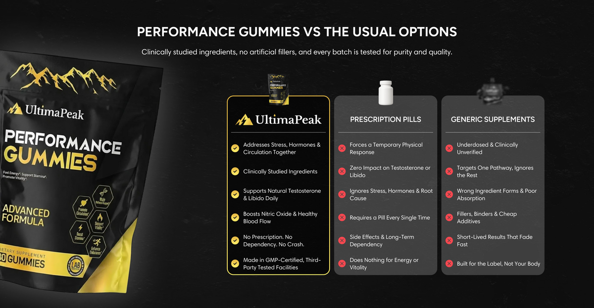 Ultimapeak® Performance Gummies are a pure, lab-tested, and natural solution for men to maintain peak physical, mental, and sexual health.